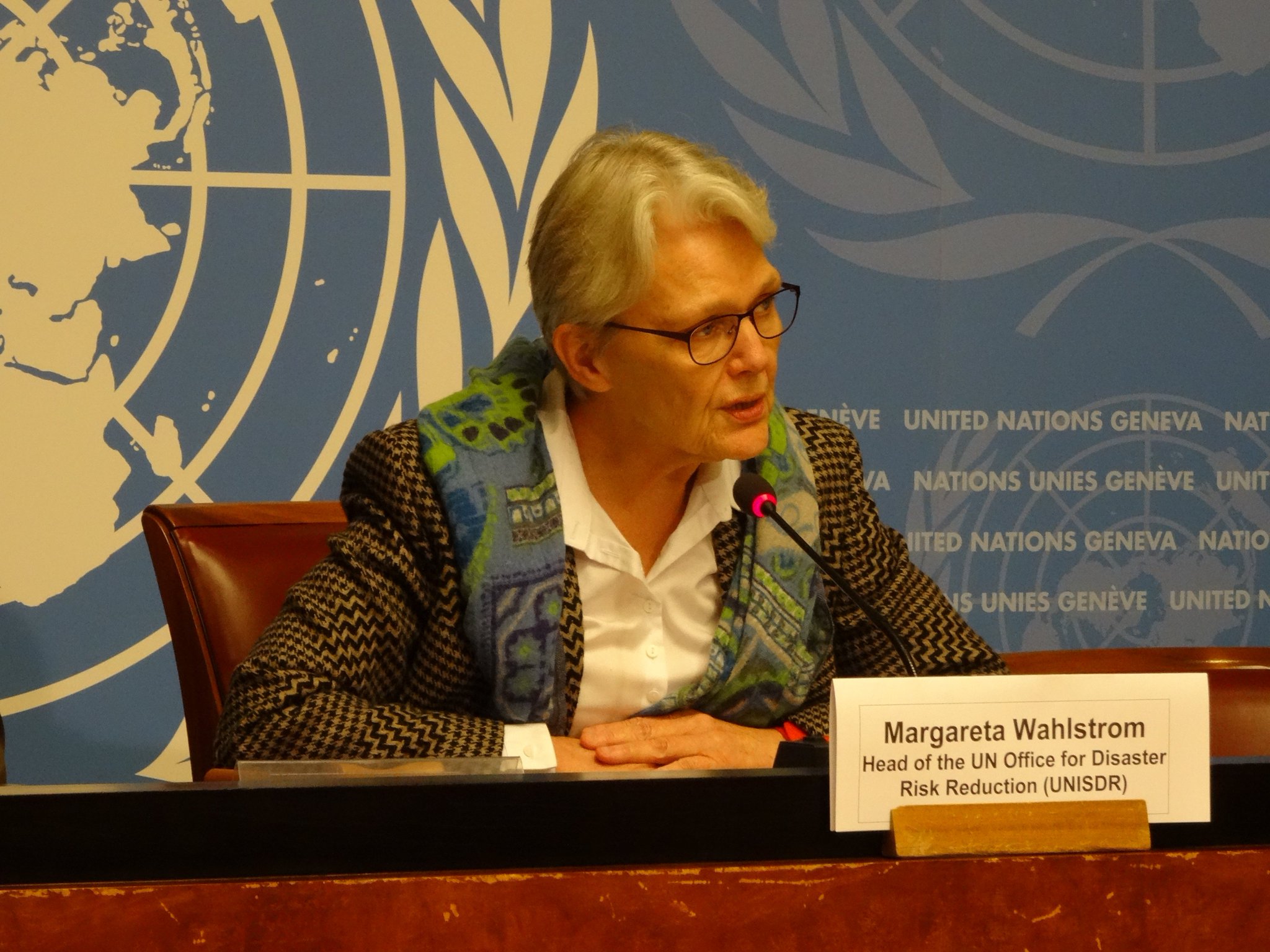 | Margareta Wahlstrom, presenting the report. She is Special Representative of the Secretary-General (SRSG) for Disaster Risk Reduction, appointed since 2008. A citizen of Sweden, she started her international career with the Red Cross (1995-2000). |